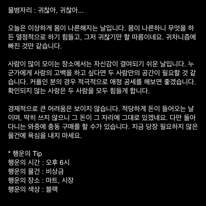 ๋๋ค. ๋ชธ์ด ๋๋ฅธํ๋ ๋ฌด์์ ํ๋ ์ด์ ์ ์ผ๋ก ํ๊ธฐ ํ๋ค๊ณ , ๊ทธ์ ๊ท์ฐฎ๊ธฐ๋ง ํ ๋ฐ๋ฆ์ด๋ค์. ๊ท์ฐจ๋์ฆ์ ๋น ์ง ๊ฒ๋ง ๊ฐ์ต๋๋ค.